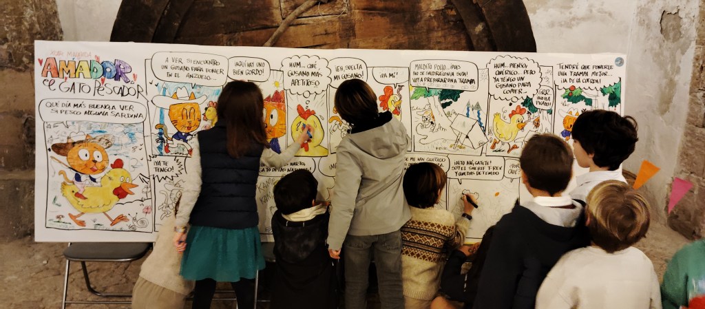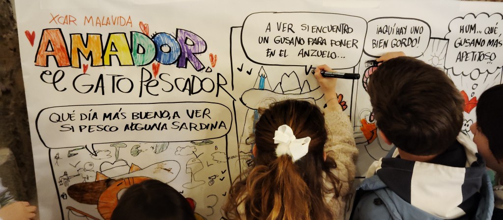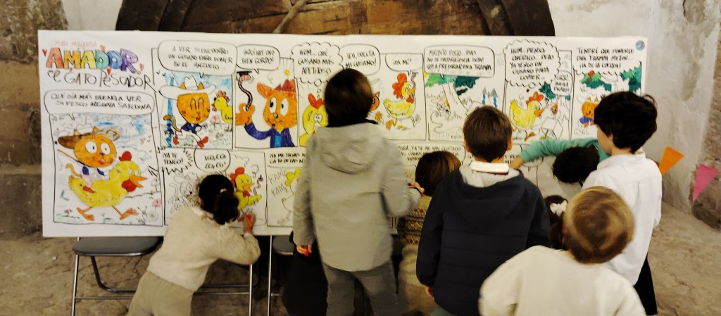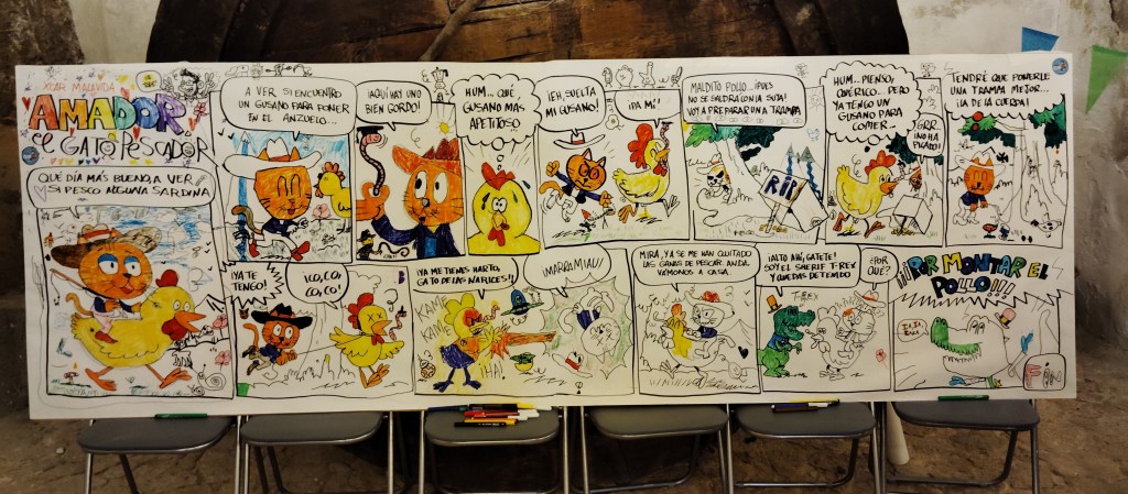 Ayer sábado 15 de febrero hice un viaje relámpago a Mallorca paa dibujar un cómic gigante con la chavalería invitado por Pepe, un gran fan de mis monigotes que acaba de cumplir 8 años. Y tuve el placer de dibujar con ellos en Can Vivot, un sitio precioso.
