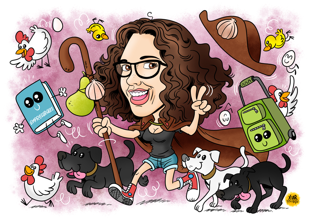 Caricatura de Silvia con sus perretes, sus gallinas y sus movidas. Un encargo de su amiga Rebeca para felicitarle el cumpleaños. ¡Felicidades, maja!Si tú también quieres tener un detallazo así con tu amiga del alma, ya sabes: me lo pides por privado (mejor si es con educación) y lo hablamos. #caricaturaspersonalizadas #caricaturas