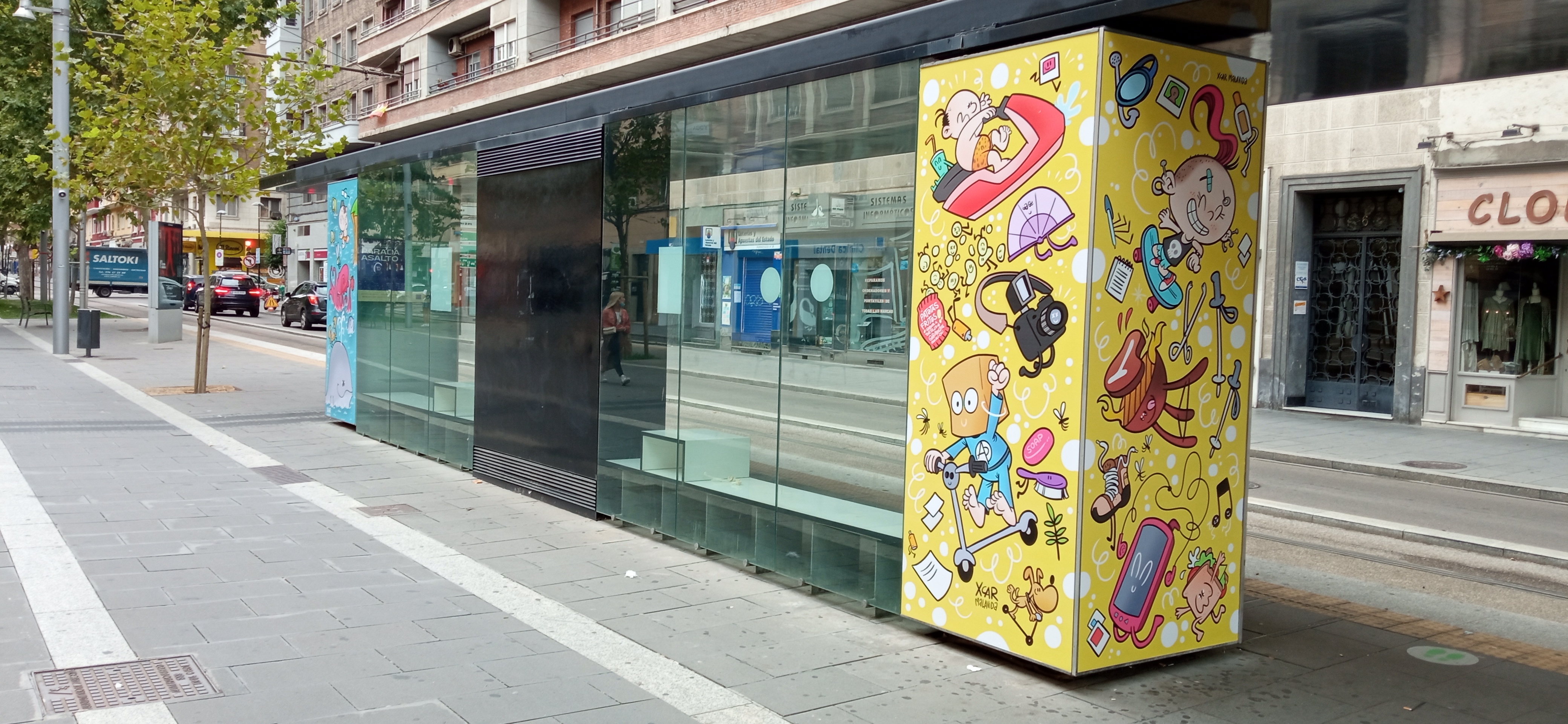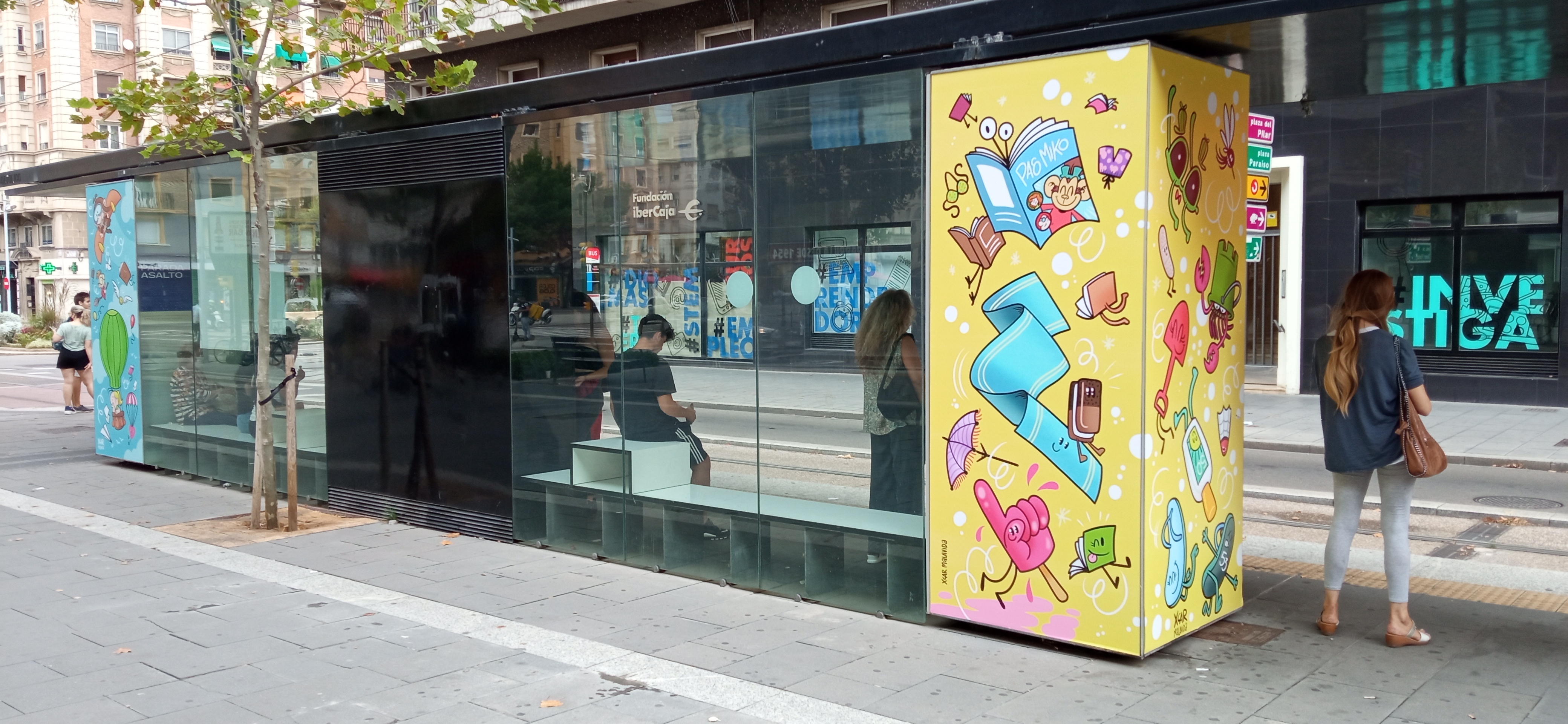 Si vais de paseo por Fernando el católico a la altura del cruce con Avenida Goya (Zaragoza) fijaos en las paradas del tranvía que llevan monigotes de un servidor
