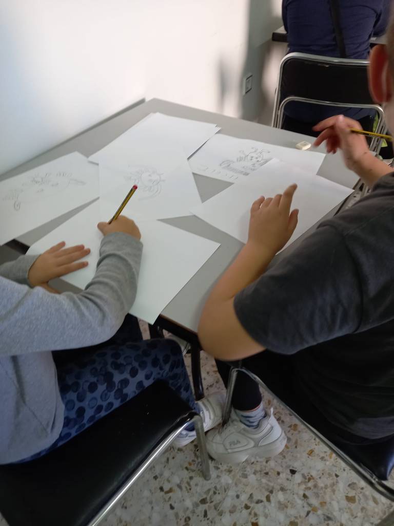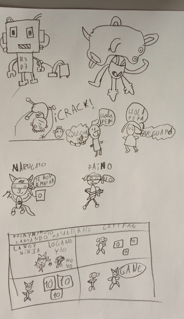Ayer estuve monigoteando con la chavalería de Fuendejalón. Aprendimos a crear personajes partiendo de figuras sencillas, luego a darles movimiento y a hacerles hablar. Y acabamos inventando dos personajes entre todos (un gato ninja-cantante y un perro ninja-guitarrista) y haciendo con ellos una página de cómic. ¡Lo pasamos en grande! Si tú también quieres llevar a tu centro esta actividad, ya sabes: me lo pides por privado (mejor si es con educación) y lo hablamos. ¡Viva la chavalería! ¡Vivan los tebeos!