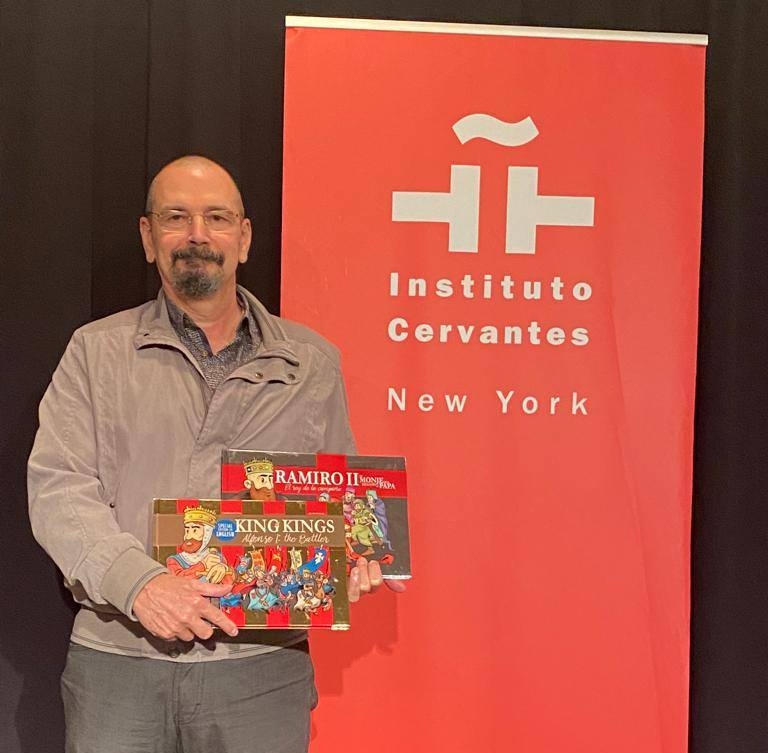 Hoy me despierto con estas fotos del encargado de la Biblioteca del Instituto Cervantes de New York con mis libros de historia de los reyes de Aragón editados por Caballeros de Exea. Postdata: no, no es el tío de Breaking Bad, aunque se de un aire.