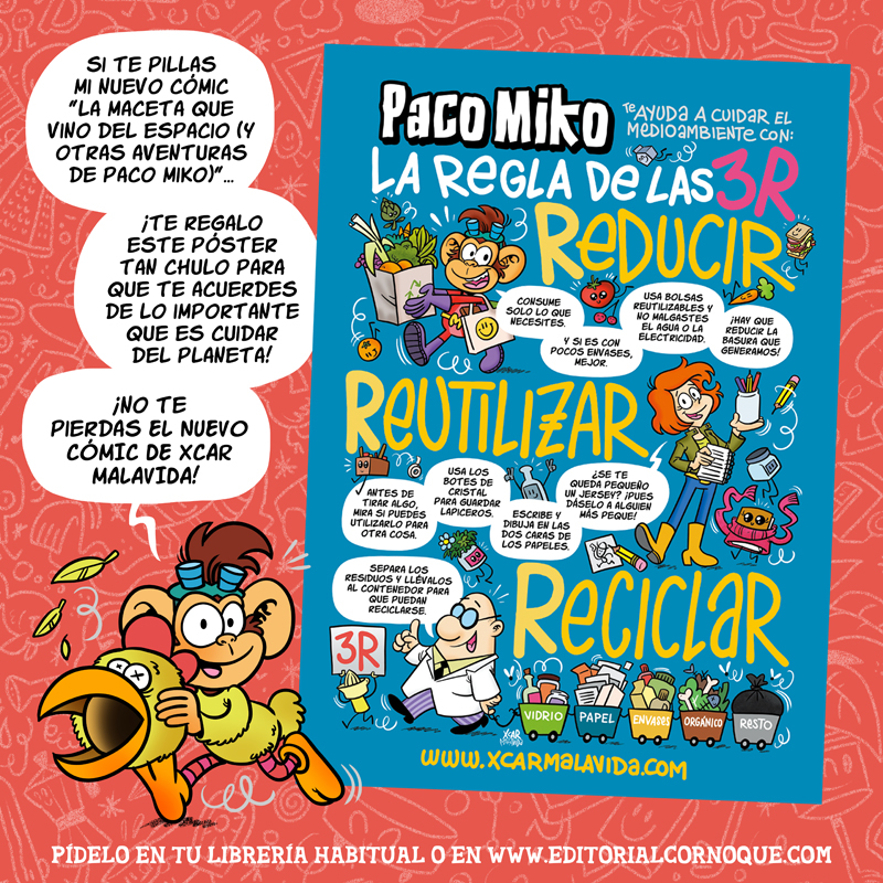 ¡El nuevo cómic de XCAR Malavida!Plantas alienígenes, patatas voladoras, viajes por el espacio, robots gigantes, libros a cascoporro, superhéroes, visitantes de otra dimensión, drones, disfraces de pollo, botijos en patinete y hasta un mono poniendo la lavadora. ¡Todo puede pasar (y pasa) en las aventuras de Paco Miko, el cientisimio más molón del planeta!