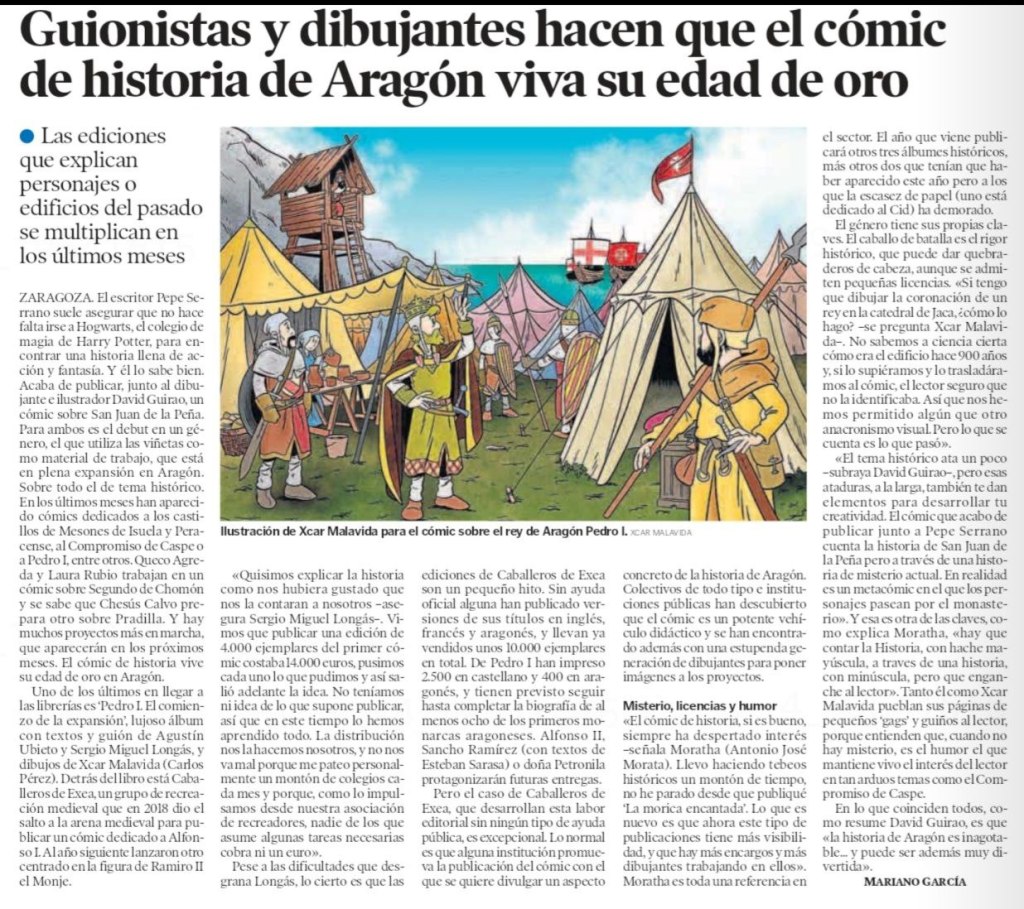 Hoy sale en el Heraldo de Aragón este reportaje sobre las últimas publicaciones sobre historia de Aragón, entre las que destaca el libro «Pedro I: el comienzo de la expansión» (de Caballeros de Exea y con ilustraciones de un servidor) así como los tebeos de David Guirao y Porrero Medieval . ¡A tope!