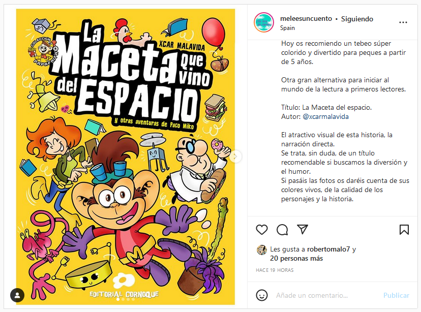 En «¿Me lees un cuento?» reseñan y recomiendan así de bien mi tebeo «La maceta que vino del espacio«. ¡Mil gracias, Mariela Cisneros Supermarielita!