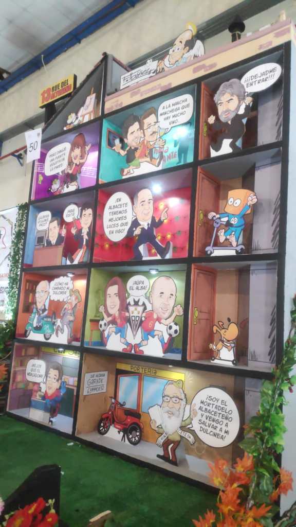 Otra cosa muy curiosa que he hecho: las ilustraciones para una carroza de las fiestas de Albacete. Este año querían hacer un homenaje a Francisco Ibáñez y me llamaron para que dibujara los personajes de 13, rue del Percebe. Aunque en lugar de los habituales, me pidieron que dibujara a gente distingida de Albacete. Por ahí salen los de Muchachada Nui, Rozalén, un par de futbolistas, el alcalde (y el ex-alcalde), y un par de lugareños muy queridos.Y encima de todo, el maestro Ibáñez.Luego han montado la estructura del edificio y han puesto delante a Mortadelo y Filemón en Vespa.Si hay alguien que vaya a estar estos días por las fiestas de Albacete, espero que se lo pase A TOPE.¡Viva Albacete!