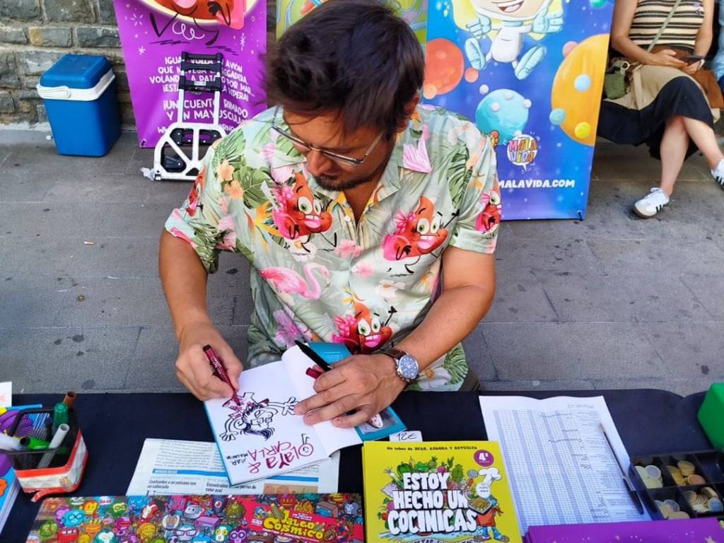 ¡Qué exitazo tuvimos el Colectivo Malavida este sábado 17 en la feria del libro de Villanúa! No paramos de firmar en todo el día, comimos de maravilla y fue un gustazo volver a juntarnos algunos malavideros tras el parón vacacional. ¡Y mi camisa de «Pepa Pera, la caca viajera» triunfó como la coca-cola!