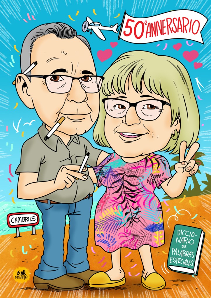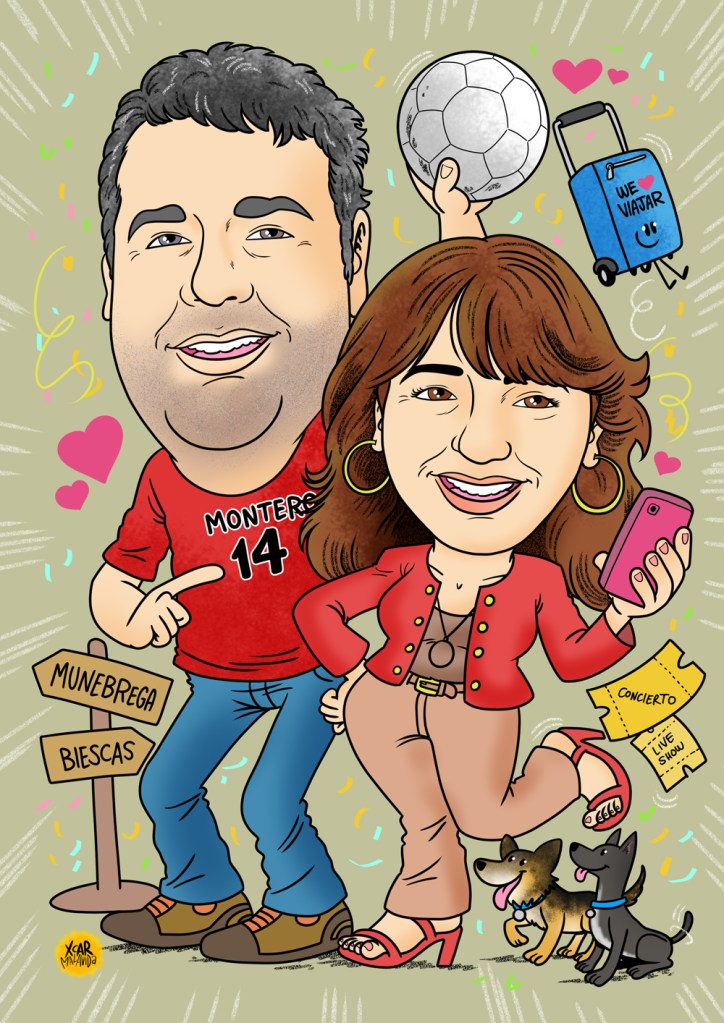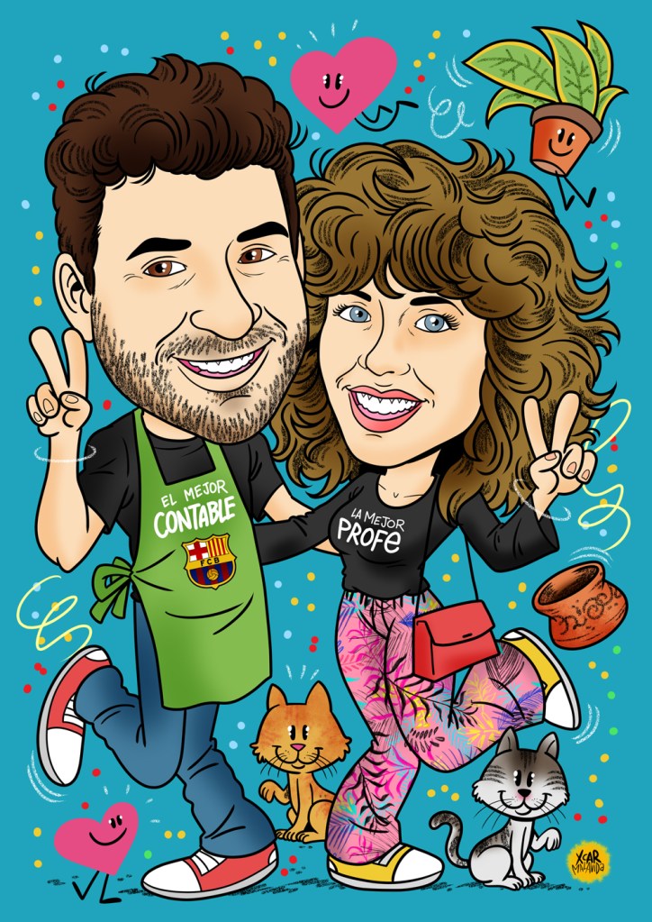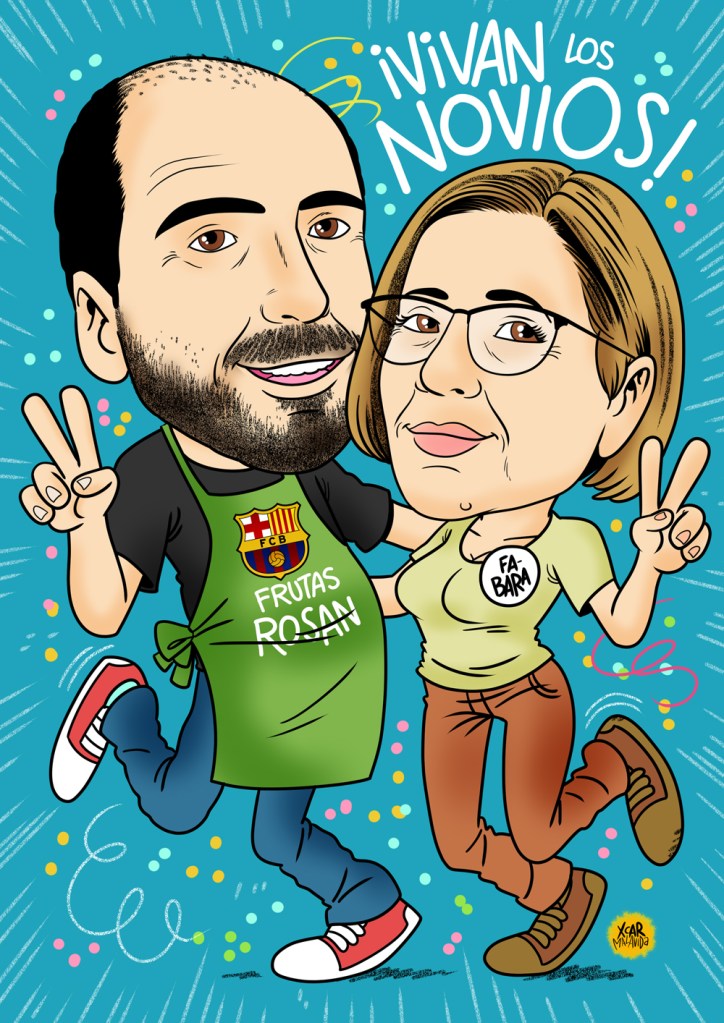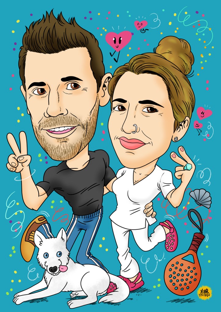 Aquí os dejo algunas de las últimas caricaturas de parejitas que he hecho: el regalo ideal para un aniversario, boda, cumpleaños o para celebrar que llevan dos semanas sin discutir al poner el Netflix. Si tú también quieres hacerle un regalazo así a un colega, amigo, familiar, vecino o ex compañero de petanca, ya sabes: me lo pides por privado (mejor si es con educación) y lo hablamos.