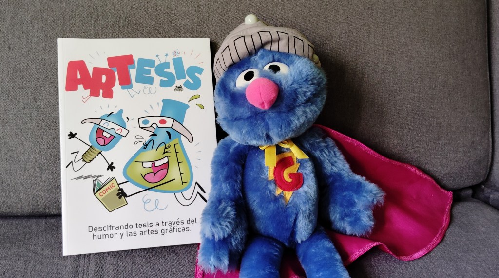 Qué contento se ha puesto mi amigo Supercoco cuando le he contado que ya está en imprenta la segunda edición de mi cómic «Artesis» (en el que explicamos tesis doctorales a través del humor y las artes gráficas). ¡Y además ya mismo empiezo a trabajar en la continuación de este proyecto tan chulo! ¡Buen día a -casi- todo el mundo!