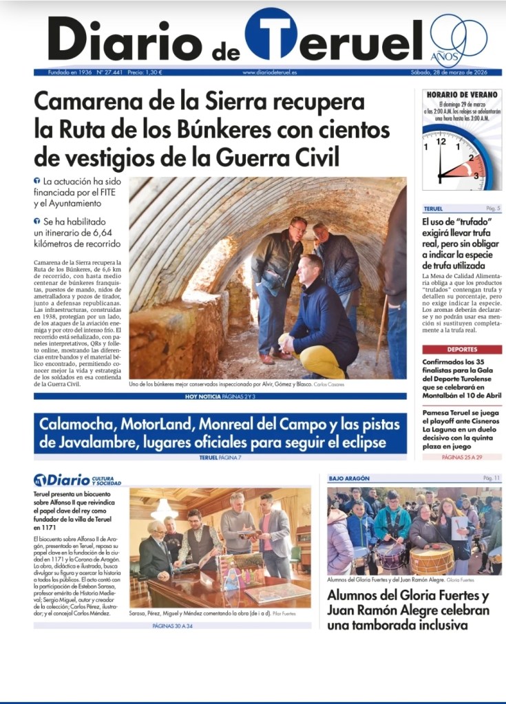 Hoy salimos en portada del Diario de Teruel com motivo de la presentación del libro «Alfonso II el trovador. Rey de Aragón y Conde de Barcelona». ☺️