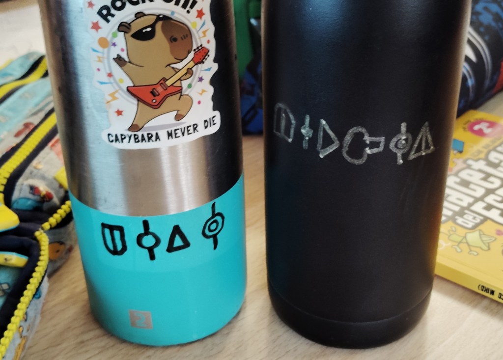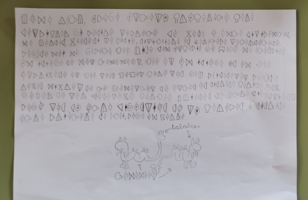 Ah, y otra cosa que me dejó flipando: en el cómic aparecen unos seres de otra dimensión llamados «Tololeos» que hablan con un lenguaje cifrado (como los petisos carambanales de Superlópez). Pues bien, la idea les gustó tanto que habían usado el lenguaje secreto para ponerse el nombre en las botellas o mandarse mensajes secretos. ¡Qué guay que les haya gustado tanto mi trabajo!