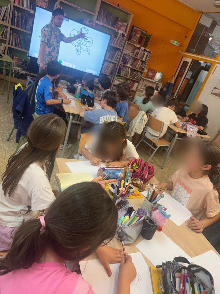 Me preguntaron un montón de cosas super interesantes (se sabían el tebeo de memoria), les enseñé algunos de mis otros trabajos, dibujamos juntos a Paco Miko y a sus colegas, les firmé los libros y, sobre todo, lo pasamos en grande.