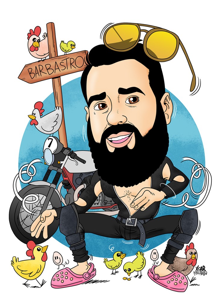 Roberto me pidió una caricatura de su amigo Charly para tener un detallazo con él. Como el mozo debe de ser un flipao de las motos me dijo que le dibujara como al humorista Wilbur (un tío del que no sabía nada pero como vivimos en estos locos tiempos en los que hay Google, sin problema). Además de montar en moto al chaval le gusta montar granjas de pollos en Barbastro. ¡La vida loca de la juventud!Si tú también quieres regalarle una caricatura a tu amigo ése al que le vuelve loco montar en monociclo y criar ornitorrincos en Soria, pídemelo con educación y lo hablamos. #caricaturas #caricaturaspersonalizadas