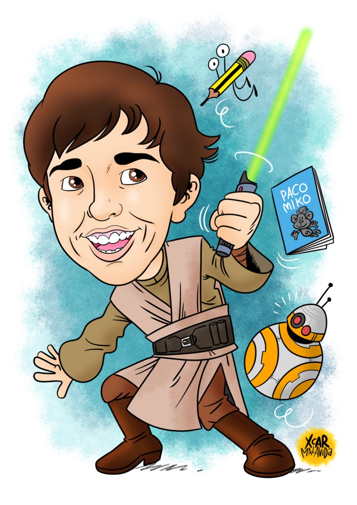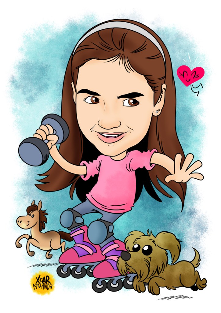 Caricaturas de Álvaro y Estela, dos chavales a los que les encanta Star Wars, los robotijos, los caballos, los perretes, hacer deporte, dibujar, leer tebeos,… ¡Vamos, que les mola hacer de todo! Si tú también quieres regalarle una caricatura a tu sobrino Pepito aunque solo le guste tumbarse a la bartola a mirar cómo se seca la pintura del techo, pídemelo por privado (mejor si es con educación) y lo hablamos.
