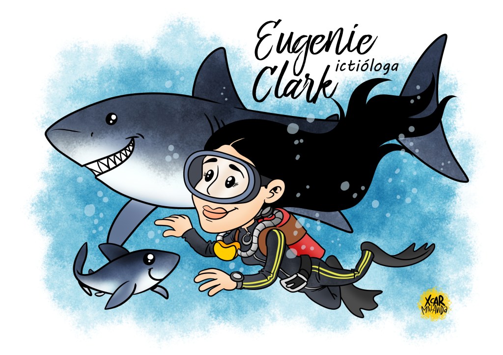 Todos los jueves Pepa Pardo nos habla de una mujer en su página Las Despeinadas de PePa (y yo aprovecho y la dibujo).La de hoy es Eugenie Clark, ictióloga. Si no sabes quién es esta buena señora (ni lo que es una ictióloga), pásate por aquí y entérate de todo, alma de cántaro. ¡Viva la Pepa! ¡Viva la ictiología!