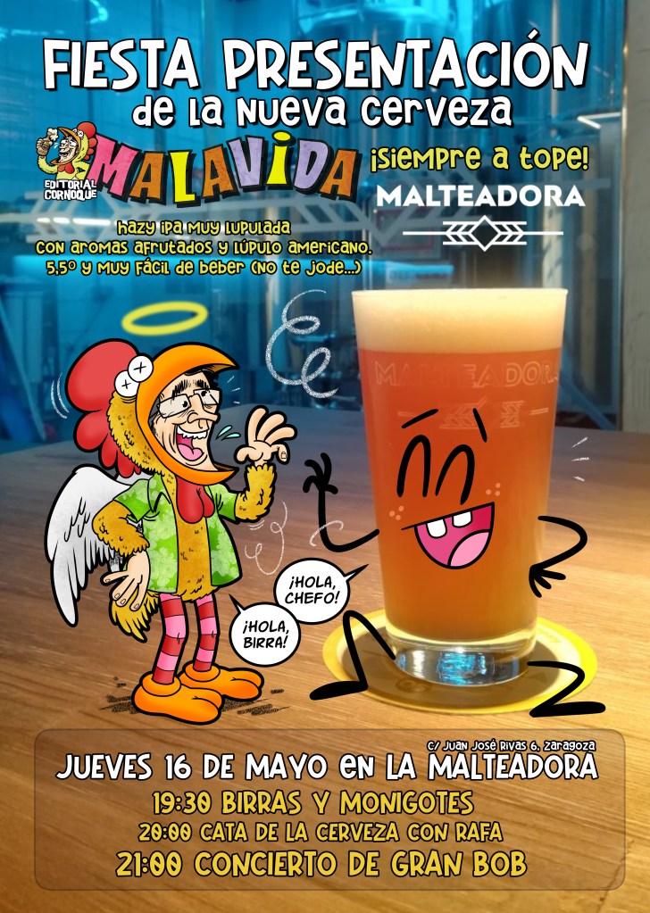 Y para celebrar semejante hazaña, las buenas gentes de La Malteadora han tenido la feliz idea de crear una birra llamada «Malavida, ¡siempre a tope!». Se trata de una Hazy Ipa lupulada con aromas afrutados y lúpulo americano; 5,5º y muy fácil, de beber (no te jode…).