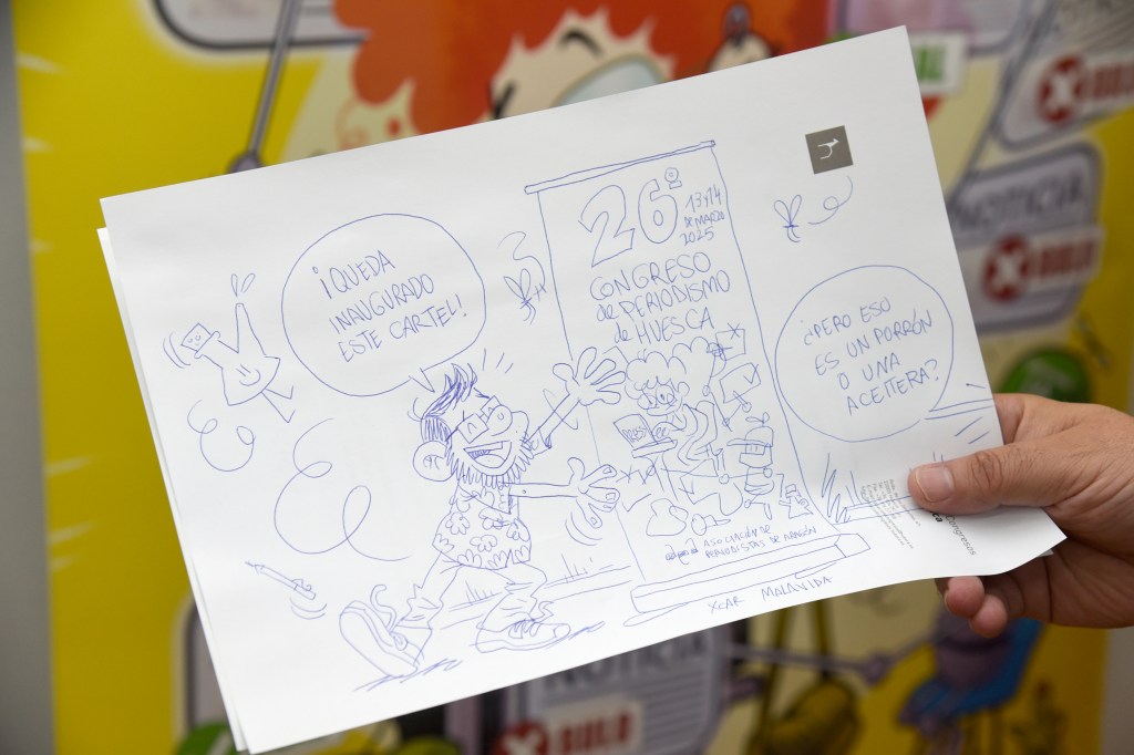He aprovechado la presentación (y la oportunidad de hacer el cartel) para denunciar la amenaza que supone el mal uso de herramientas como la IA para los trabajadores de mi sector. Os dejo con la explicación que di del mismo en la nota de prensa. «Junto a la fecha, hoy se ha desvelado cual será la imagen de la 26ª edición del Congreso de Periodismo de Huesca, que en esta ocasión es obra del artista gráfico Carlos Pérez XCAR Malavida. El mismo ha explicado durante la presentación lo que deseaba plasmar con este cartel: “uno de los principales problemas a los que se enfrentan hoy los periodistas y, en general, cualquier persona que trabaje conectada al mundo: la incertidumbre laboral”. Concretamente, “cómo nos amenazan las nuevas tecnologías y en concreto la Inteligencia Artificial, respecto a la merma de puestos de trabajo, incluso entre los creativos”. XCAR Malavida también ha querido reflexionar con esta imagen sobre los aspectos positivos que el uso de las nuevas tecnologías puede tener “y que pueden suplir las carencias que tenemos los seres humanos. En concreto, utilizar la IA para detectar la presencia de bulos y fake news”. Por último, ha apelado a la necesidad de que exista una regulación que proteja a los trabajadores, tanto de los medios de comunicación como de su propio colectivo de artistas y creativos.»