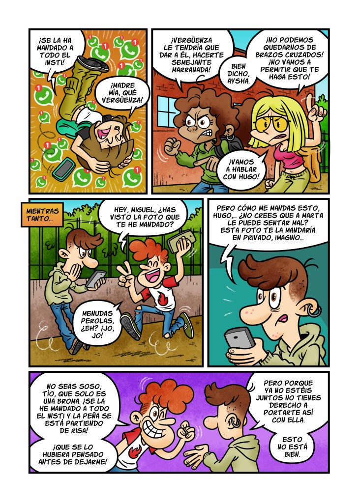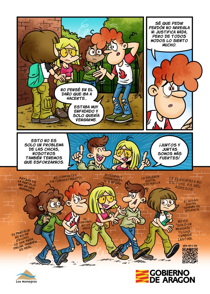 El cómic se llama «¡Cambia el código! Crea un mundo sin violencia de género» y trata el tema de la violencia de género digital para concienciar a la chavalería de la importancia de tratarnos como iguales.