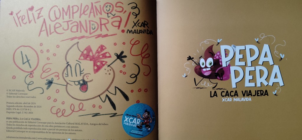 1 – Pepa Pera, la caca viajera. Igual vuela en avión que navega en regadera. Volando, a pata o por mar… ¡Esta caca es la repera! Un libro infantil ilustrado rimado y en mayúsculas. Escrito e ilustrado por XCAR Malavida. Tapa dura. 24,5 x 22 cm. Todo color. 15 € Publica Editorial Cornoque.