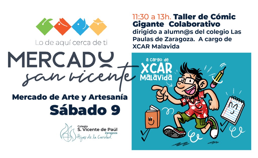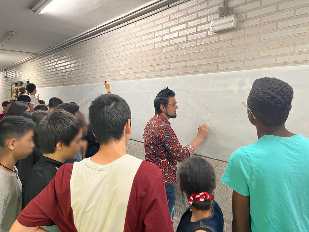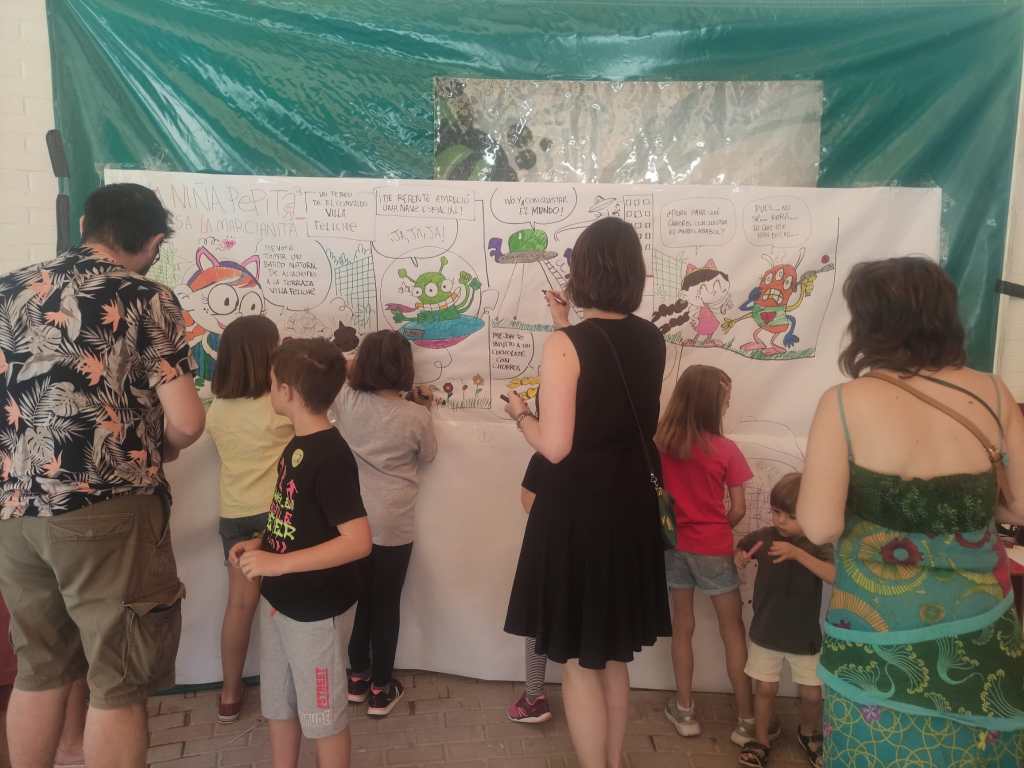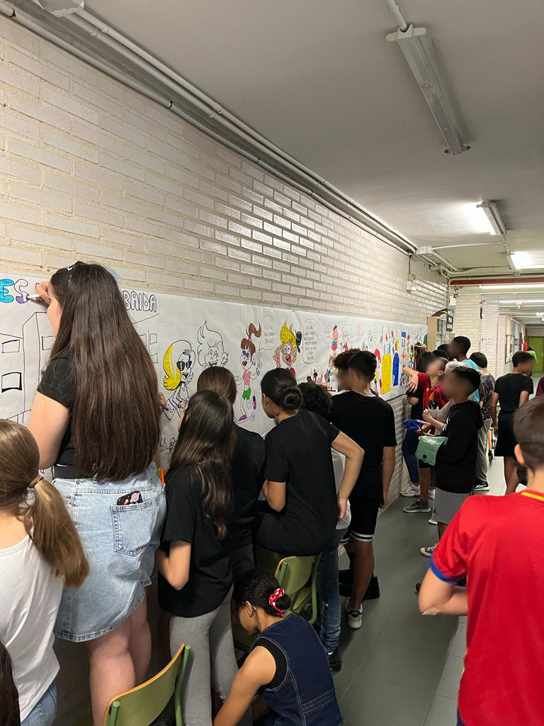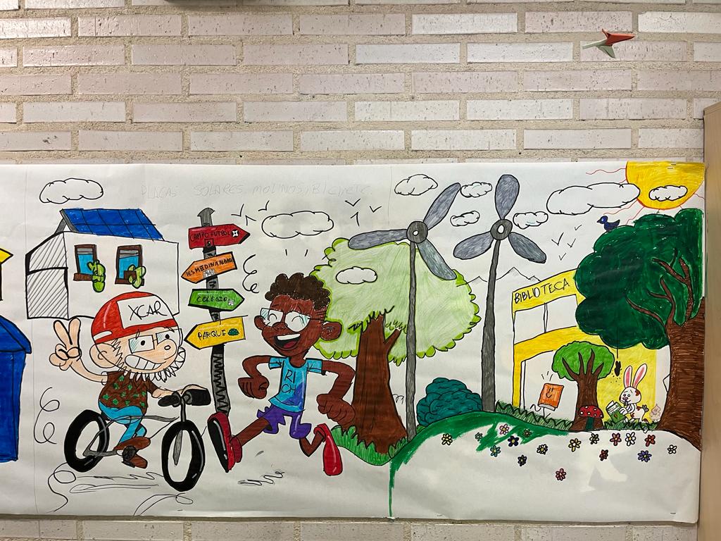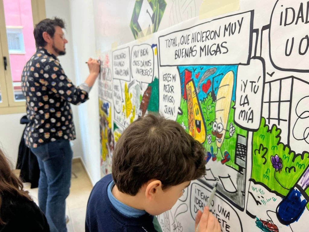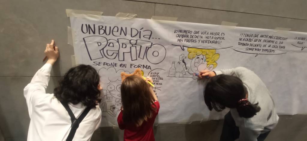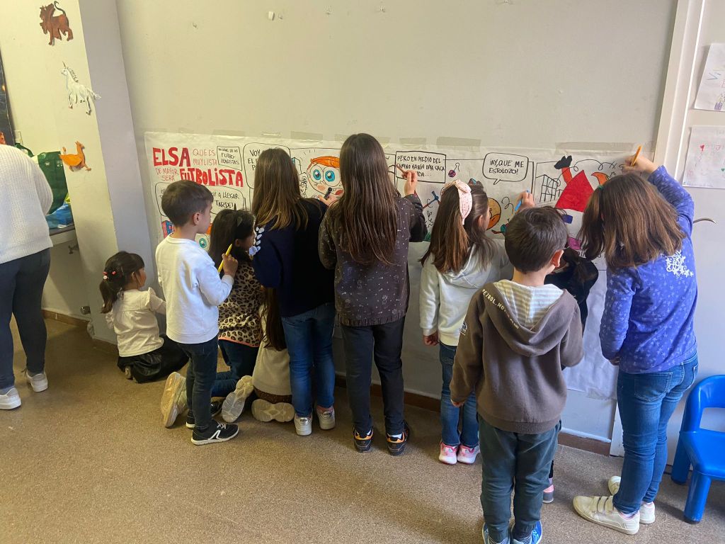 Ayer estuve dibujando con la chavalería de primaria del cole Doctor Azúa de Zaragoza. Estuve con tres clases (6º A, B y C), y nos marcamos un cómic gigante chulísimo entre todos.