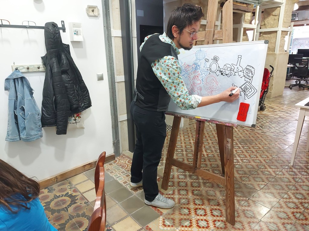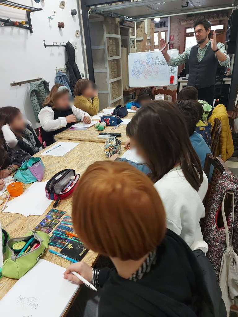 ¿Cómo funciona esto? Muy fácil: me traes a tu chavalería y tú te vas a echar unas cañas por el gancho, tan ricamente. Aprenderemos a dibujar y a inventar personajes e historias. ¡Con mucho humor y dinamismo! Y cada sesión es distinta, que siempre nos inventamos mil locuras.