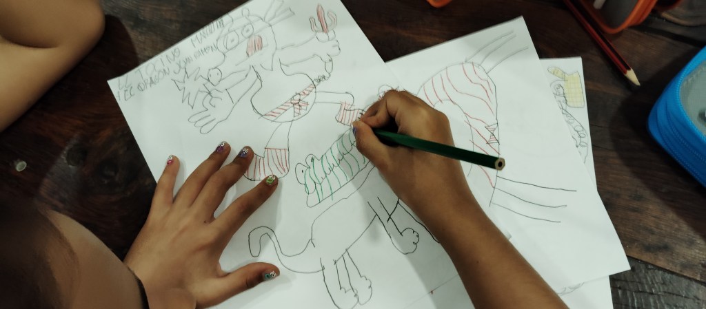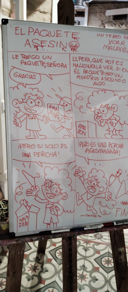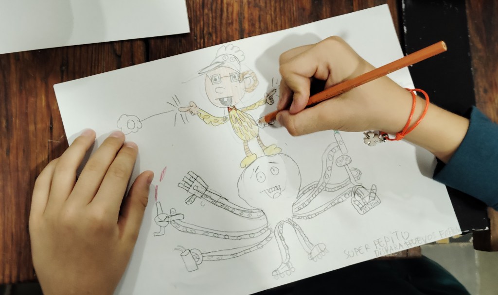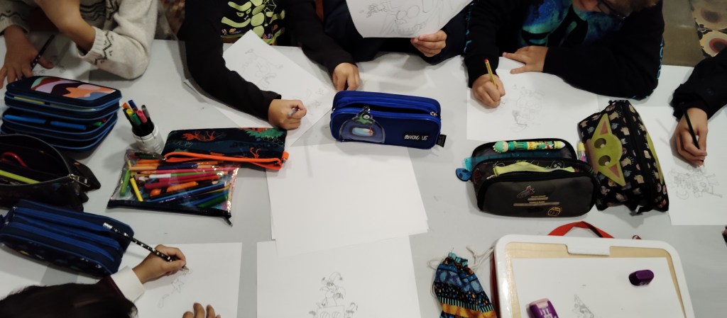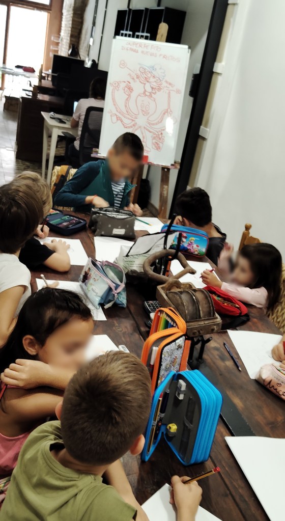Estoy muy contento con esta actividad: la chavalería es más maja que las pesetas, vienen con unas ganas locas de dibujar y de aprender, y los dos grupos son muy participativos. Vamos, que una vez más… ¡me encanta mi trabajo!