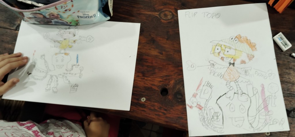 Os dejo unas fotos para que veais lo bien que lo pasamos la última vez y los dibujazos que se marcó la chavalería.