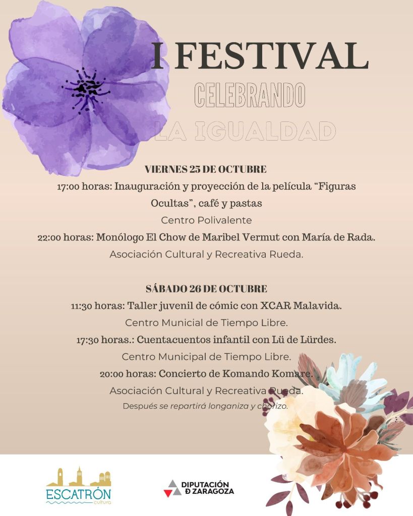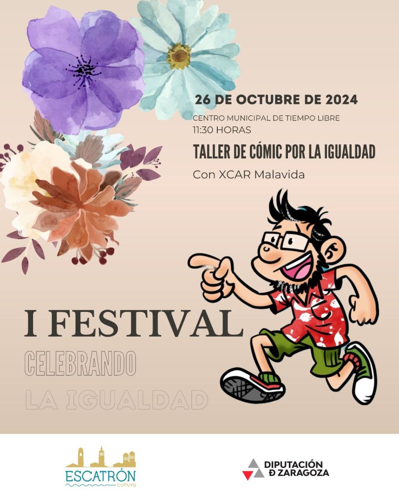 Mañana sábado 26 de octubre voy a estar en Escatrón participando en el «I Festival celebrando la igualdad». Daré un taller de cómic gratuito para la chavalería, ¡os espero!