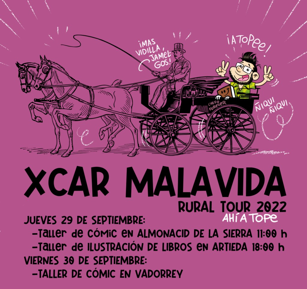 ¡Nuevo taller de dibujo infantil con XCAR Malavida! ¿De qué va esto? Pues muy fácil: me traes a tu chavalería y nos lo pasamos en grande dibujando, inventando cosas locas y haciendo un libro entero con sus dibujicos para llevárselo a casa. Y tú, mientras tanto, te vas a tomar el vermú o a dar un paseo con tu pareja tan ricamente. Domingo 27 de febrero de 12:00 a 13:30 en Rayuela (C/ Pedro Arnal Cavero 16, Zaragoza). 12 euros por peque, a partir de 5 años. Para inscribir a tu chavalería manda un correo electrónico a inforayuelazaragoza@gmail.com (indicando nombre y apellidos, edad y teléfono de contacto). ¡Os espero! ¡Viva la chavalería! ¡Vivan los tebeos!