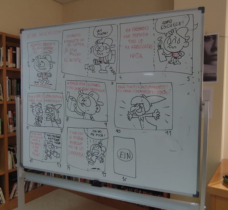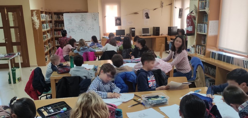 Hace poco tuve el gustazo de estar enseñando a dibujar a la chavalería de Leciñena. Me tratron de maravilla y lo pasamos de miedo. Escribimos (y dibujado) un libro de poesía ilustrado en apenas hora y media. ¡Aprende, Pérez-Reverte! Si tú también quieres hacer esta actividad en tu centro, pídemelo por privado (mejor si es con educación) y lo hablamos. ¡Viva la chavalería! ¡Vivan los tebeos!