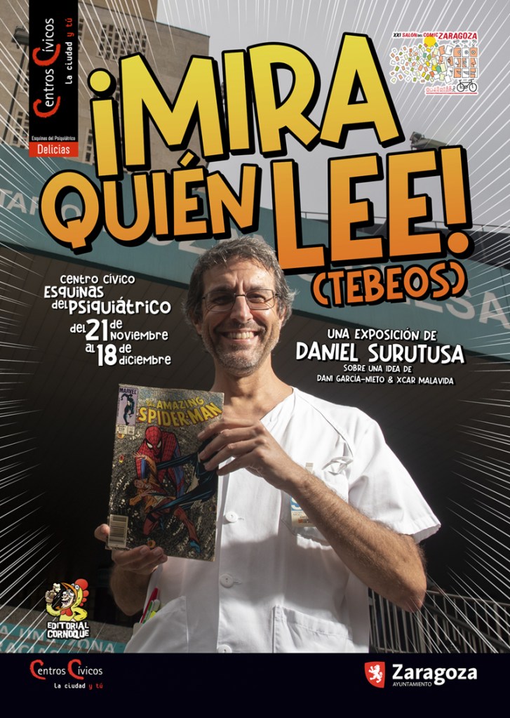 4-En el C.C. Esquinas del Psiquiátrico (Vías Univérsitas 2, Zaragoza) podéis ver la exposición «¡Mira quién lee! (tebeos)», con fotografías de Daniel Surutusa sobre una idea de Dani García-Nieto y XCAR Malavida (¡servidora!). Es la actividad que da inicio a #diciembremesdelcómic y a la programación del Salón del Cómic de Zaragoza, y pretende poner el ojo en una parte importantísima del mundo del cómic: los lectores y las lectoras.