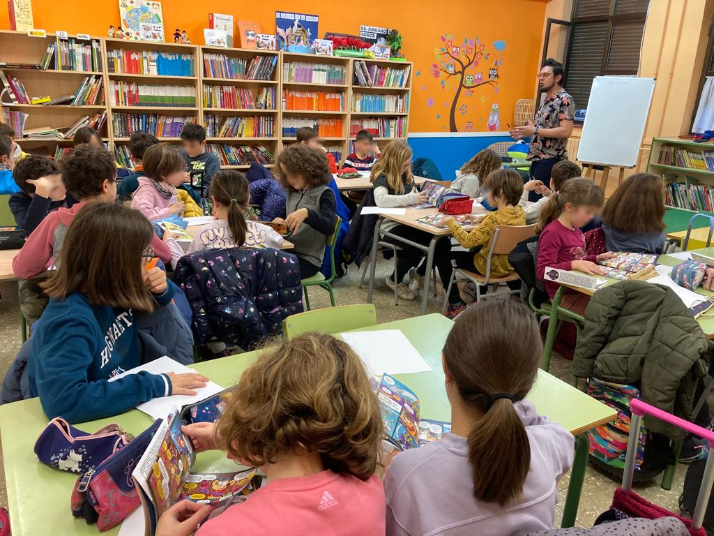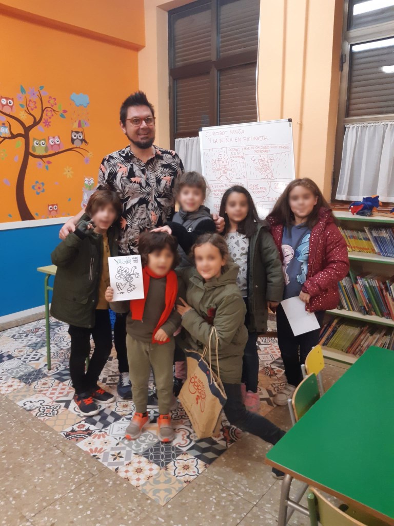 El viernes tuve el honor de estar como invitado en el club de lectura del Cole Miraflores de Zaragoza. Fue un gustazo ir a una clase llena de chavalería que había devorado mi tebeo «La maceta que vino del espacio (y otras aventuras de Paco Miko)«. Me contaron lo mucho que les había gustado, la cantidad de veces que se lo habían leído, me preguntaron un montón de cosas divertidísimas y acabamos dibujando todos juntos. Ah, y luego me tuvieron una hora firmando ejemplares, porque vinieron todos con su ejemplar de casa. ¡Muchas gracias! ¡Lo pasamos de maravilla! Yo sigo currando a tope para que la chavalería descubra que leer (y hacer tebeos) es algo divertidísimo. Si tú también quieres que vaya a tu centro a hablar de mis tebeos o a dibujar con la chavalería, ya sabes: me lo pides por privado (mejor si es con educación) y lo hablamos. ¡Viva la chavalería! ¡Vivan los tebeos! #diciembremesdelcómic