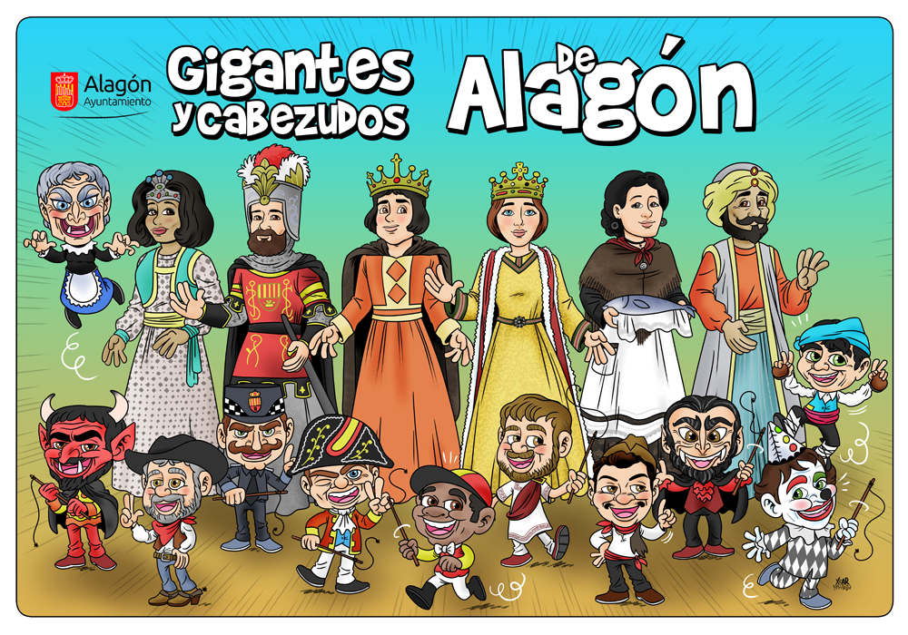 El Ayuntamiento de Alagón me encargó que dibujara a todos los gigantes y cabezudos de la localidad para celebrar que, tras el parón por la pandemia, ¡por fin vuelven a celebrarse las fiestas y vuelven a salir a las calles!