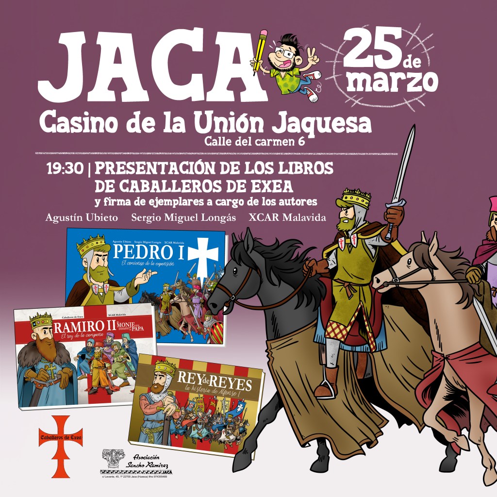 Y esta tarde… ¡nos vemos en Jaca! Hoy viernes 25 de marzo a las 19:30 presentaremos en el Casino de la Unión Jaquesa (C/ del Carmen 6) los tres libros de historia de los reyes de Aragón que ha publicado la gente de Caballeros de Exea y que he tenido el gustazo de ilustrar: Alfonso I, Ramiro II y Pedro I.