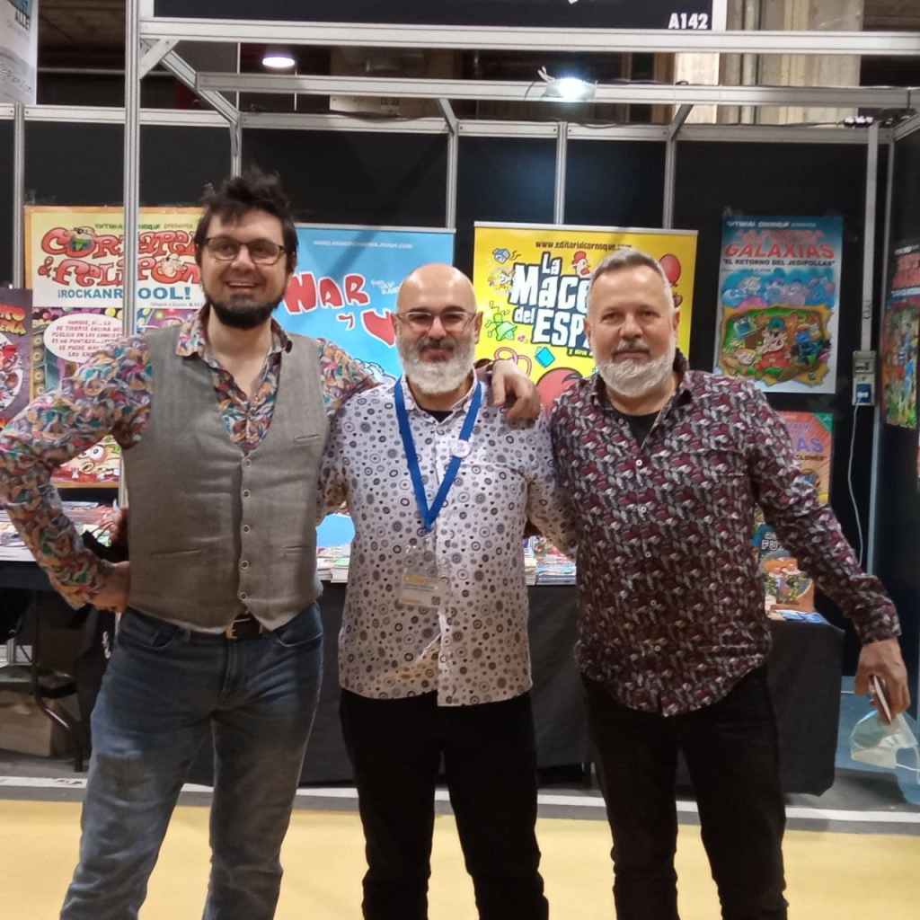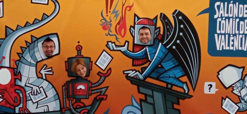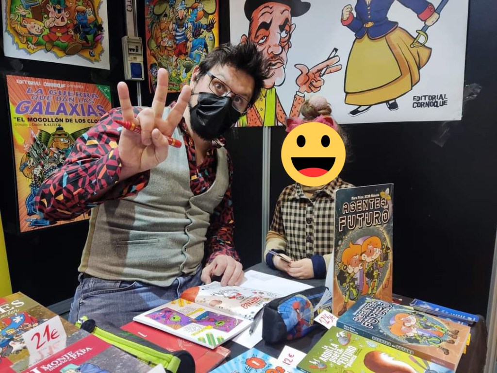 ¡Qué maravilla el Salón del Cómic de València! Un gustazo enorme volver a ver un salón del cómic casi casi como los de antes de la llegada del covid: pasillos llenos, chavalada haciendo cosplay (como la muchacha de la foto, que no tengo ni idea de qué va vestida), familias enteras, karaoke, tebeos a cascoporro, muñacos y cosas raras, frikazos con mochilas llenas de tebeos, charletas con los clientes, encontrarte con viejos colegas,… ¡Y además hemos vendido y firmado mucho más de lo que esperábamos! De hecho, hicimos cortos de varios títulos. Un gustazo ir con mi compañero Luis Orús Gracia: hemos currado como jabatos, hemos comido como tocinos, hemos bebido como beduinos y nos hemos divertido como enanos. ¡Muchas gracias a todo el mundo por este finde tan chulo! ¡Viva la chavalería! ¡Vivan los tebeos!